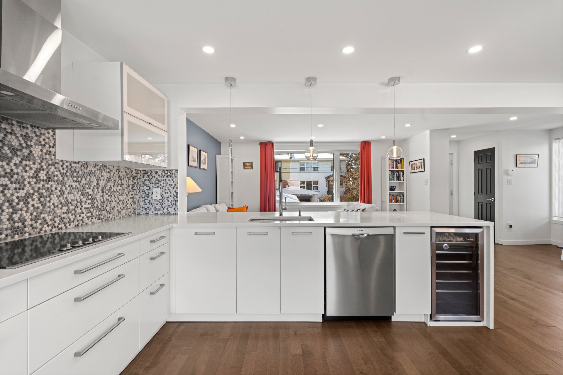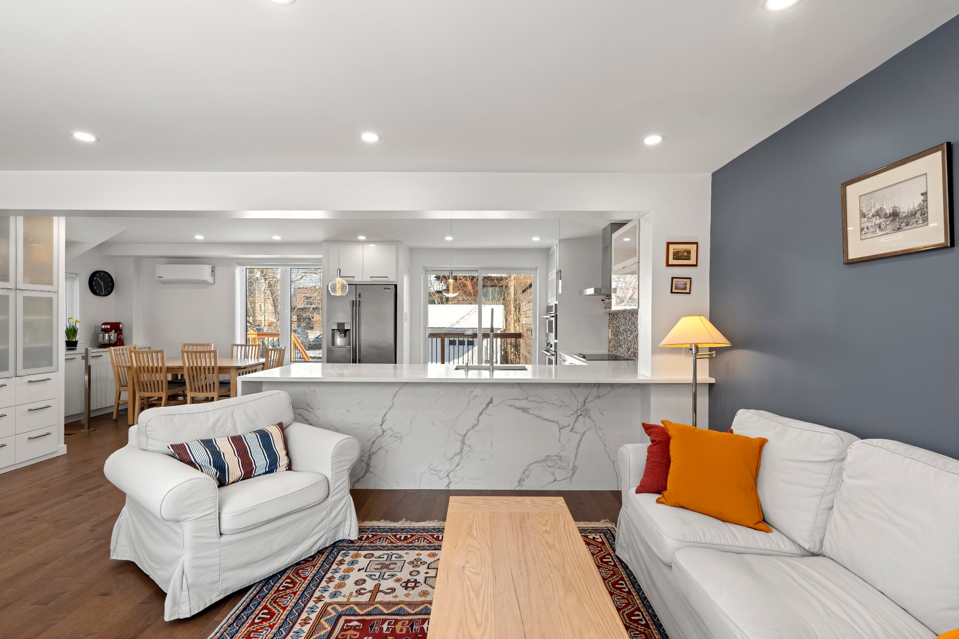 open-concept kitchen with an 11-foot quartz