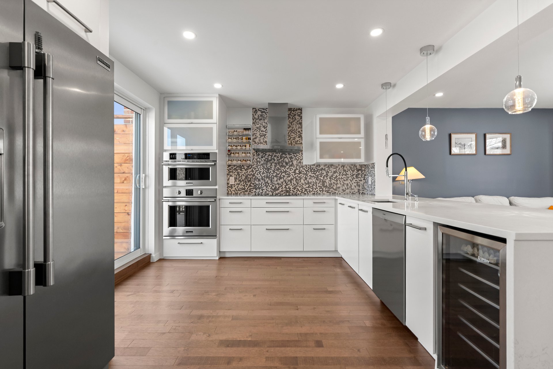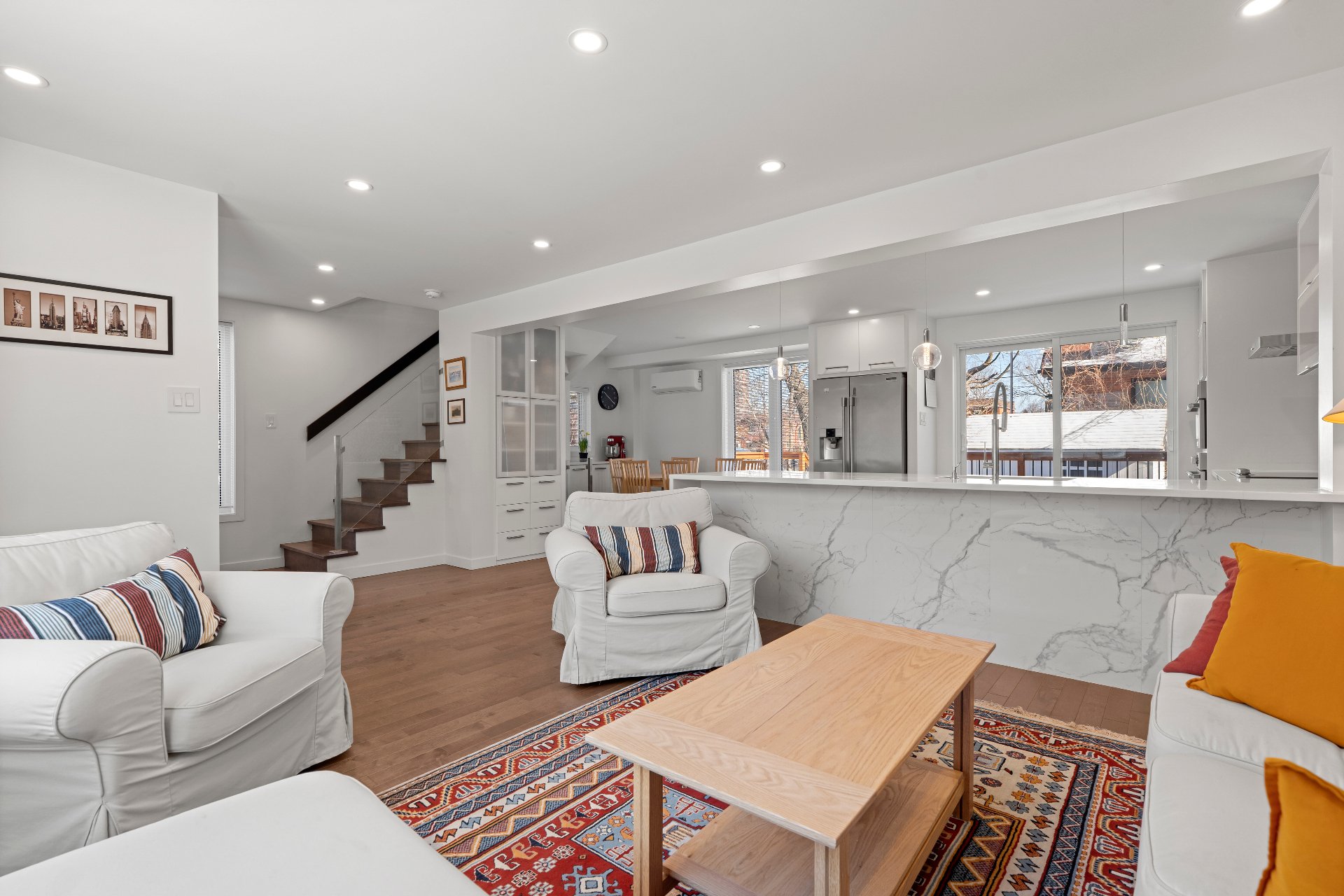 Stunning fully renovated corner semi-detached home in the heart of NDG, a few minutes walk to Monkland Village and its vibrant lifestyle. Bright and turnkey, it offers 3 bedrooms, 3 bathrooms with heated floors including one in the basement, plus a finished basement with 7' ceilings, family room and laundry room. Open-concept kitchen with an 11-foot quartz countertop. Garage + parking. Prime location near Benny Park, schools, NDG Sports Centre and all amenities.