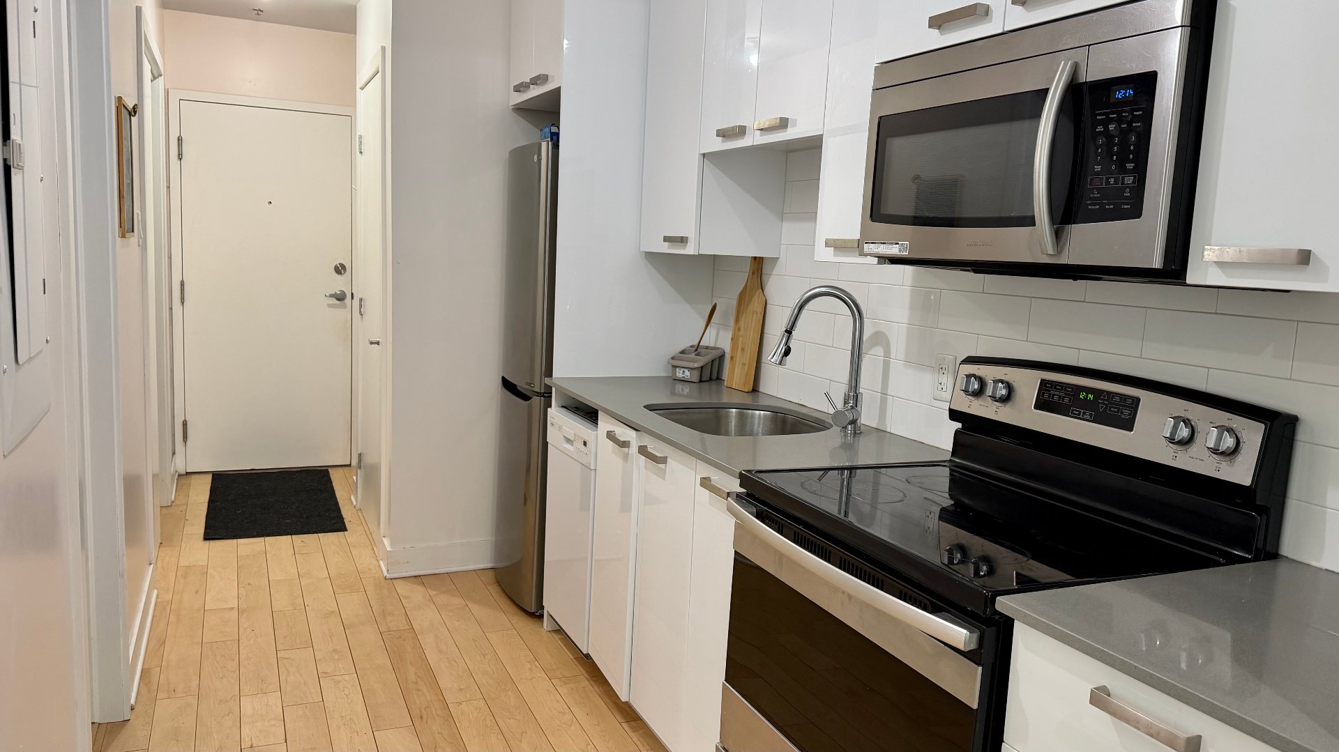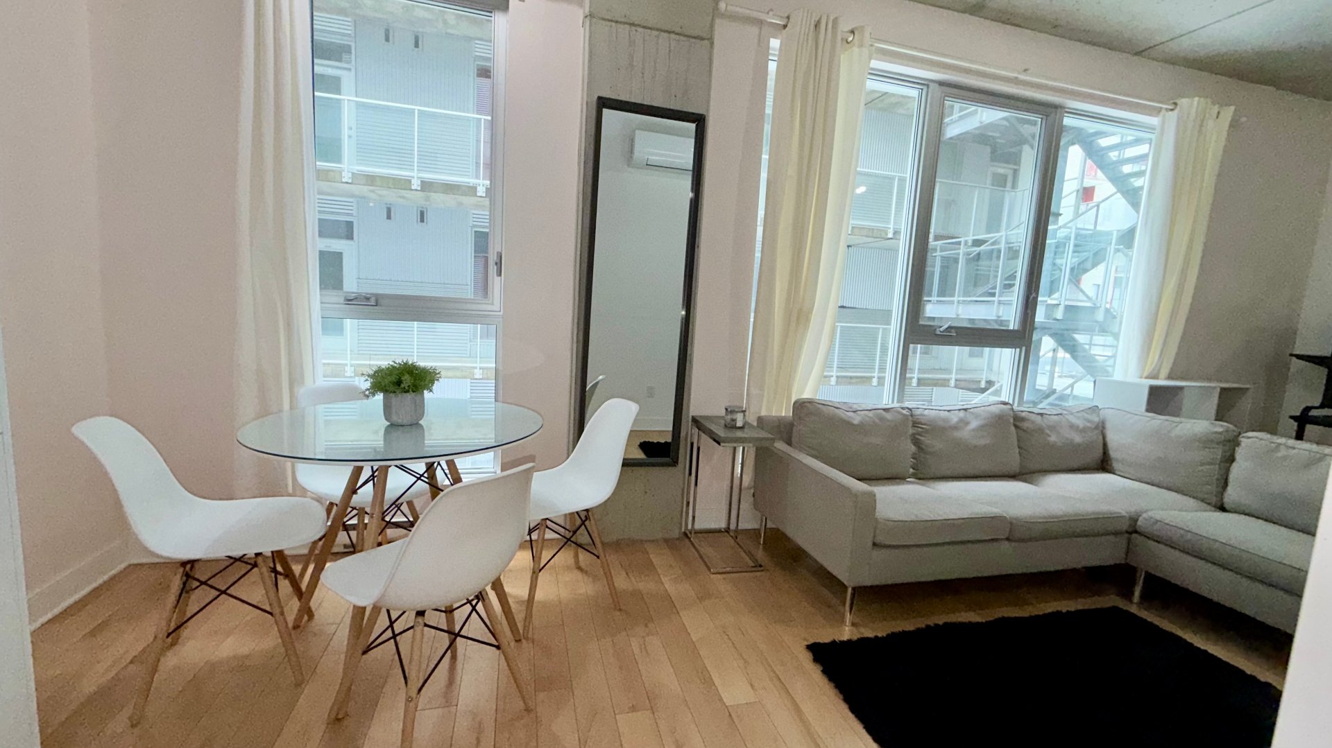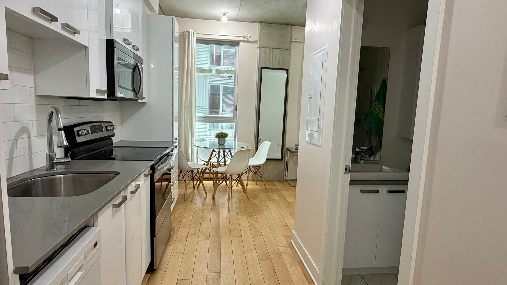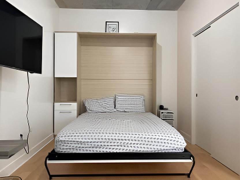 Available February 1st, 2026. Bright modern loft in Lofts Gatineau, directly across from Parc Jean-Brillant and 3 minutes from Côte-des-Neiges metro. Solid concrete construction ensures a quiet, soundproof living environment with elevator and security cameras. Fully equipped kitchen with new appliances, washer and dryer, Queen Murphy bed, sofa bed, smart TV, wall-mounted AC and electric heating. Large windows provide excellent natural light. Rooftop terrace with stunning views of Saint Joseph's Oratory and shared garden. Indoor parking available. Clean pets welcome with certain conditions.